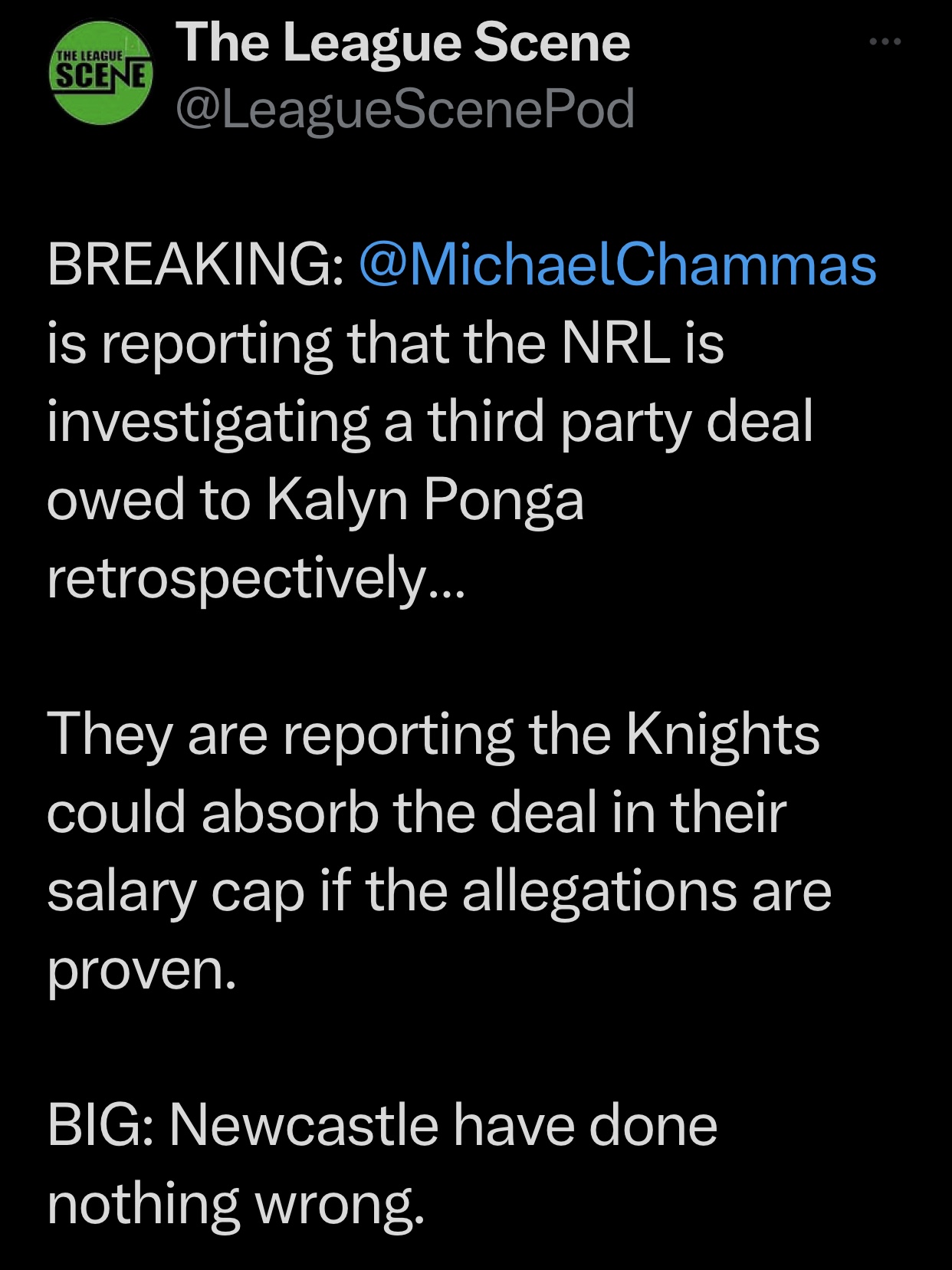 If we get another long term injury with Ponga does the organisation wonder if it’s worth it? We could have two or more great players for the price of the one, minus Tinkler 2.0 which is his father.That’s what it sounds like. Think its from his last contract. Sounds like they’re saying the Knights can absorb it in the cap which I didn’t know was allowed.