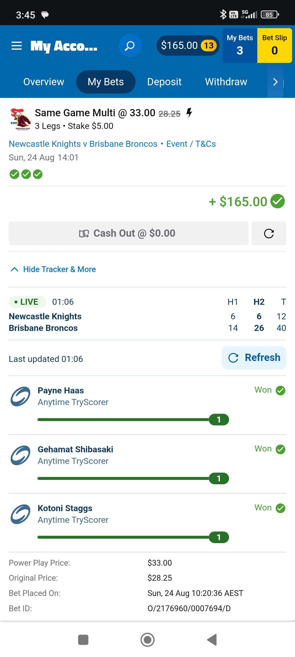 Highlight for me was Walsh standing in goal, but not scoring the try, only to beckon another Bronco over to score it instead, and there were about 3-4 Broncs that could still have taken the ball and scored, not a Knight near them, nobody coming through to make sure. Embarrassing.